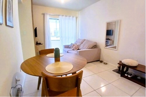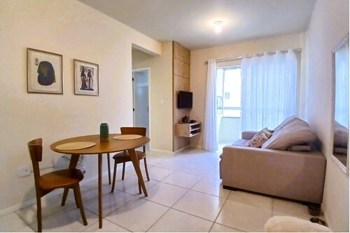 O imóvel conta com uma sala e cozinha integradas, além de uma sacada com churrasqueira, proporcionando um ambiente amplo e sociável, ideal para receber amigos e familiares.