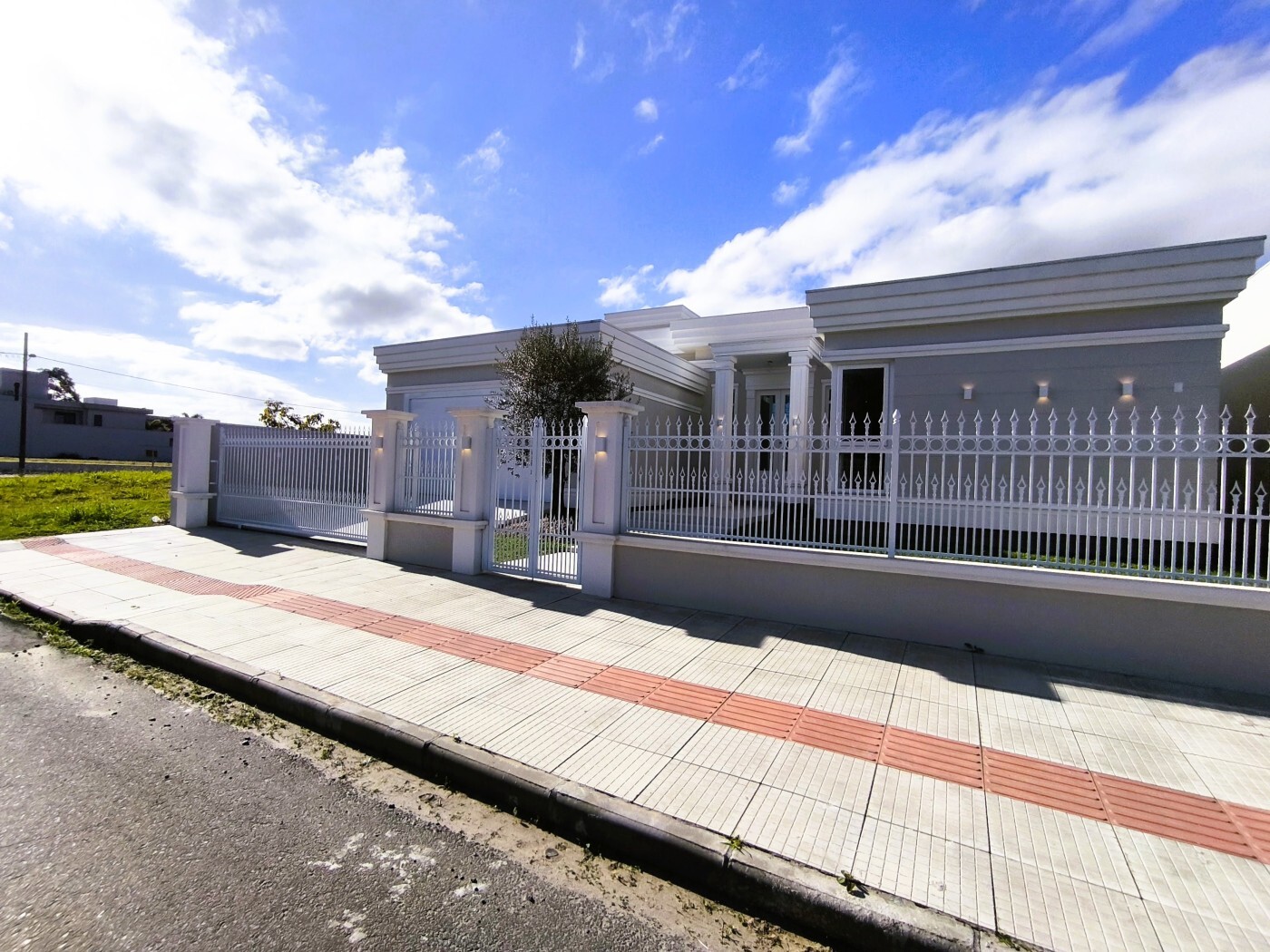 No interior, 223,24 m² de área construída acomodam com distinção três dormitórios, todos suítes, sendo uma delas master com closet, além de um lavabo. A sala de estar e jantar fluem com naturalidade, proporcionando encontros memoráveis, enquanto o espaço gourmet, equipado com churrasqueira, convida a celebrar momentos gastronômicos rodeados por um delicado jardim. A cozinha funcional e a área de serviço eficiente reforçam a experiência de morar bem. A garagem coberta para dois veículos, o portão eletrônico e o fato de ser casa do primeiro dono garantem segurança e tranquilidade desde o primeiro instante.